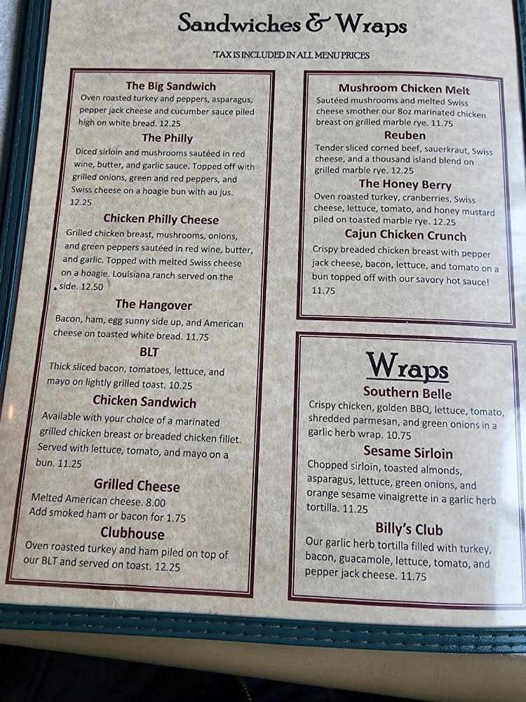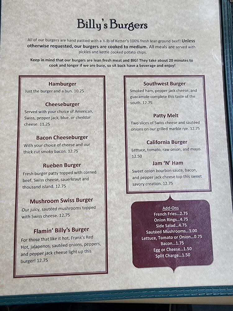 The menu at Billy's Corner Bar & Grill reflects the heart of American cuisine. From mouthwatering burgers to hearty sandwiches, there's something for everyone.