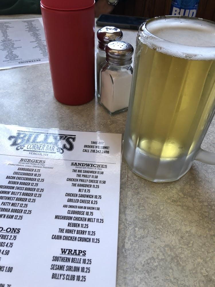 Welcome to Billy's Corner Bar & Grill, your go-to spot in Vergas, MN for a delicious meal and a lively atmosphere. Located at 158 W Main St, we offer a diverse menu featuring local specialties, excellent cocktails, and a wide selection of beers. Enjoy our outdoor terrace or take advantage of our takeout and delivery options. Whether you're here for lunch, dinner, or a solo bite, you'll find the perfect spot to relax. Join us for live music, quiz nights, and sports events, all while experiencing our friendly service and accessible amenities. Make Billy's your next dining destination!
